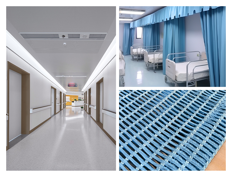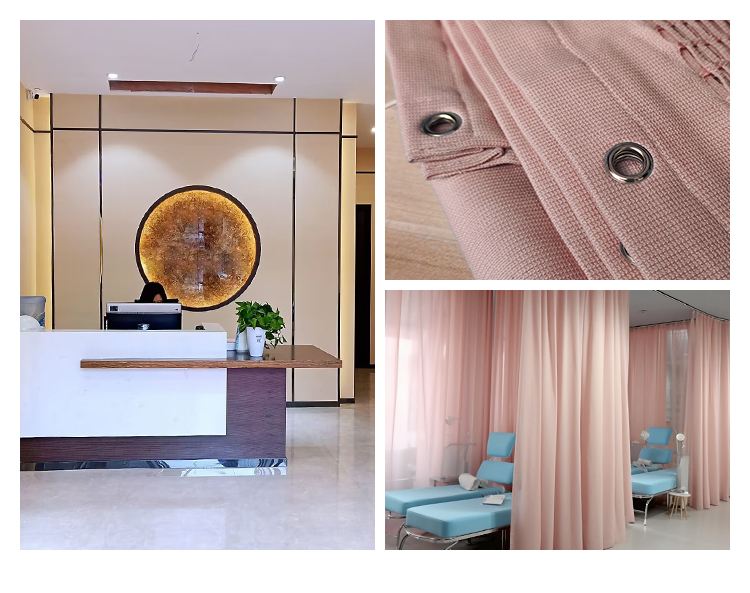 Custom Drapery Hospital Privacy Curtain, Flame Retardant, Washable with mesh and Grommets