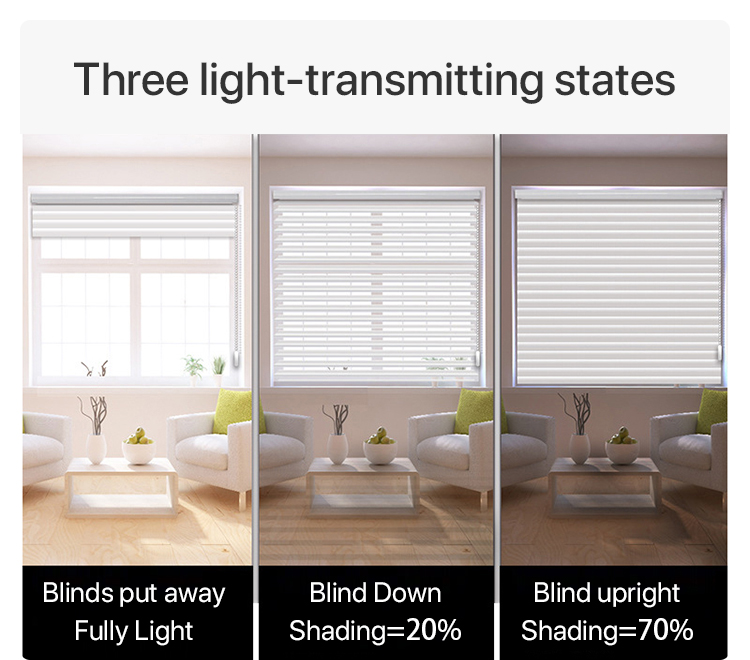 Custom Shangri-La Roller Shades Light Filtering Window Shades Room Darkeing Triple Sheer Shades Privacy Light Control for Day and Night Bedroom Office Study